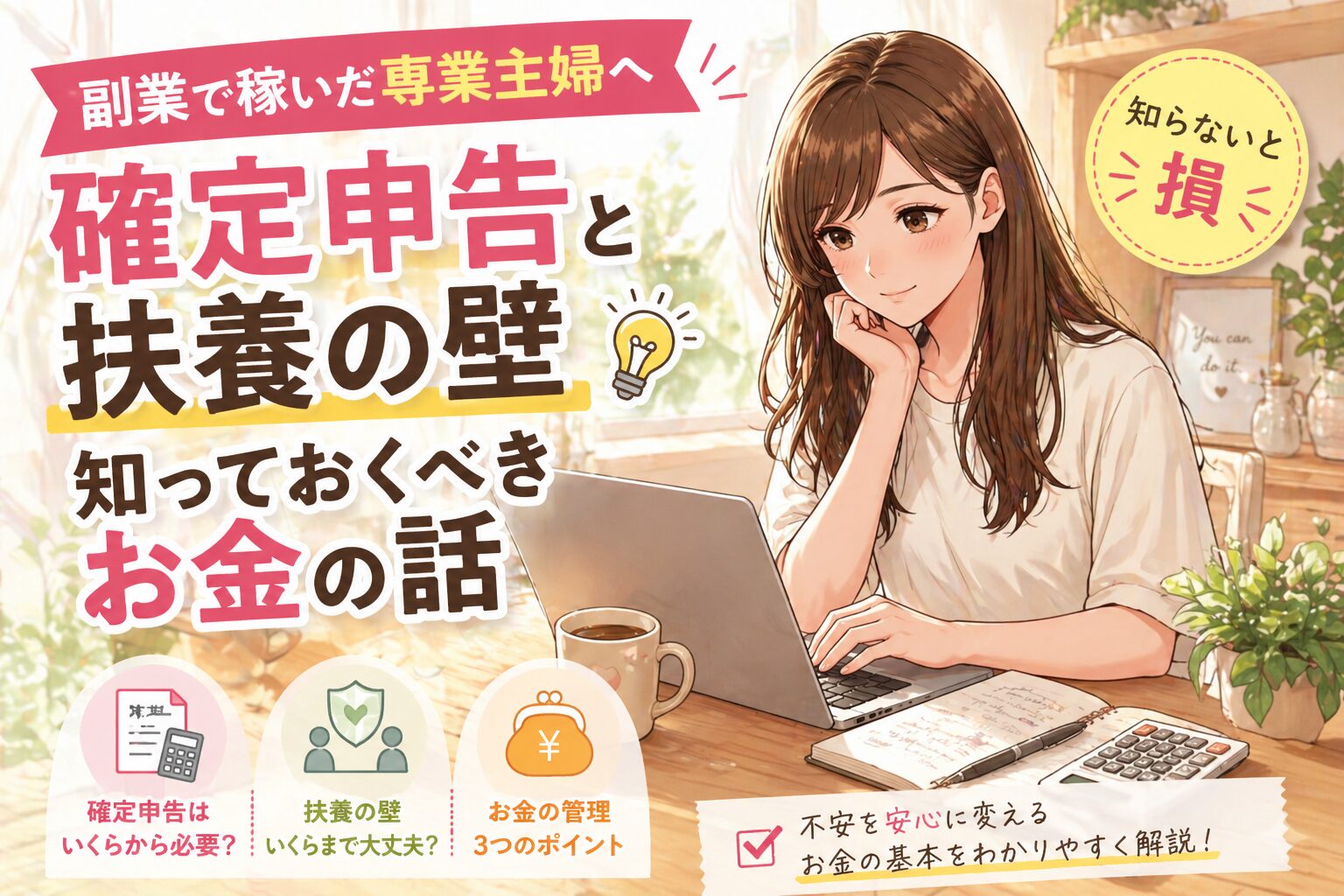 この記事では、専業主婦が副業で収入を得たときに必ず押さえておきたい「確定申告」「扶養の壁」「お金の管理」の3つをわかりやすく解説します。難しい税金の話も、主婦目線でかみ砕いてお伝えしますので、最後まで読んでみてください。