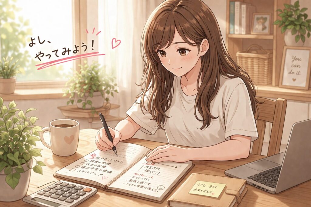 副業を始めた専業主婦が最初に感じる不安の多くは、「稼げるかどうか」より「ちゃんとやれているかどうか」という不安です。でも今日の内容を知っているだけで、その不安の9割は消えます。