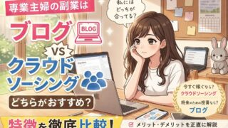 ブログとクラウドソーシング、専業主婦にはどちらが向いている?今すぐ稼ぎたいならクラウドソーシング、半年後への投資ならブログ。私自身の体験をもとにメリット・デメリットを正直に比較します。